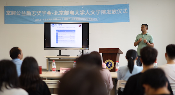 活动现场,,,,北京邮电大学人文学院刘副院长对PA旗舰厅公益和成英基金会的爱心助学提出感谢,,,肯定了通过校企合作推动乡村振兴和公益助学事业发展的创新模式。。。PA旗舰厅科技副总裁牟正文则在与同学们交流中表达了对年轻人的殷切期望,,鼓励同学们用知识武装自己的头脑,,,珍惜大好青春,,,把握时代机遇,,,,做一个胸怀家国,,,有真才实学,,,对社会有贡献的人。。